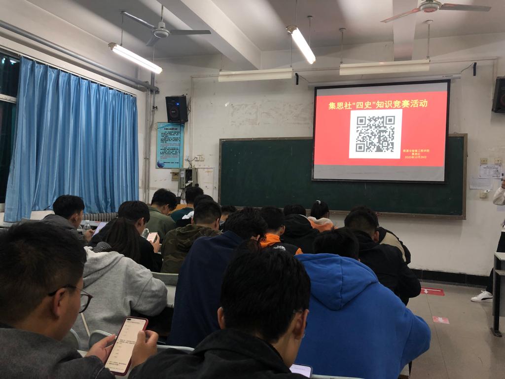 根据学校《关于开展党史、新中国史、改革开放史、社会主义发展史学习教育及新冠肺炎疫情防控知识竞答讲述活动的通知》、《开展“四史”知识竞赛活动通知》要求,2020年11月5日星期四晚上,太阳集团tyc234cc集思社举办“四史”知识竞赛活动。集思社骨干和部分学生会干事参加活动,此次活动由团总支副书记丁子怡主持。