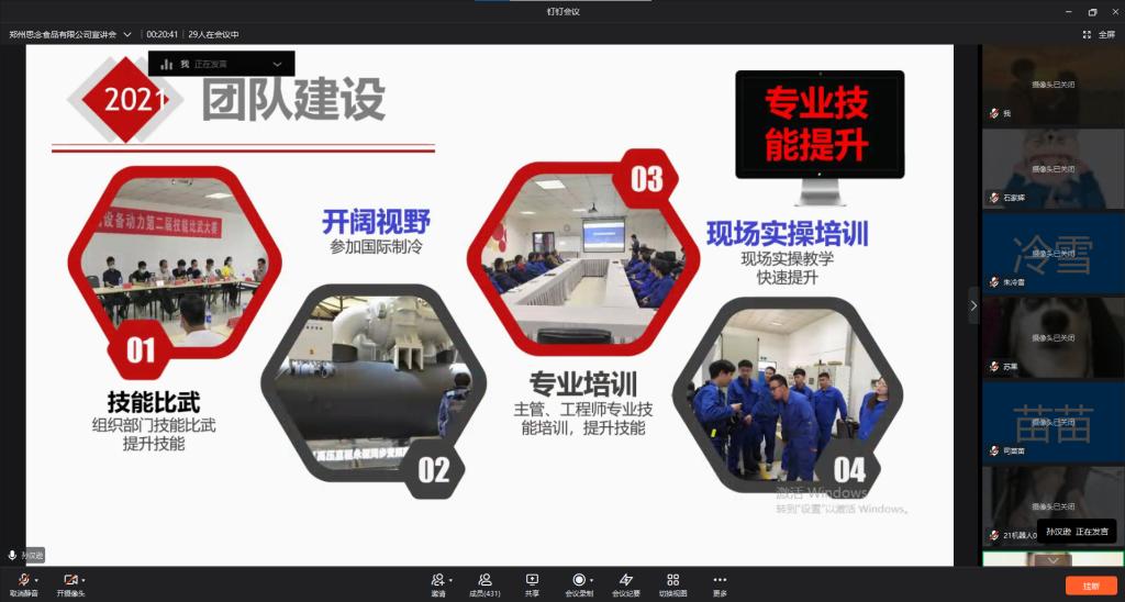 首先,司苗苗女士向同学们介绍思念食品有限公司的基本概况、企业文化和发展前景。紧接着,司苗苗女士重点介绍了公司对岗位的需求、薪资待遇、工作时间与员工福利等,让同学们进一步认识到公司的巨大潜力和雄厚实力,以及员工晋升快、工作氛围好等优势。然后,由孙汉逊经理分享自己在本公司的职业道路,鼓励同学们积极从事自己学习的专业,增强专业自信心。最后,思念食品有限公司的负责人司苗苗利用答疑时间为同学们解答了对企业的各种疑惑和问题,本次线上宣讲会圆满结束。