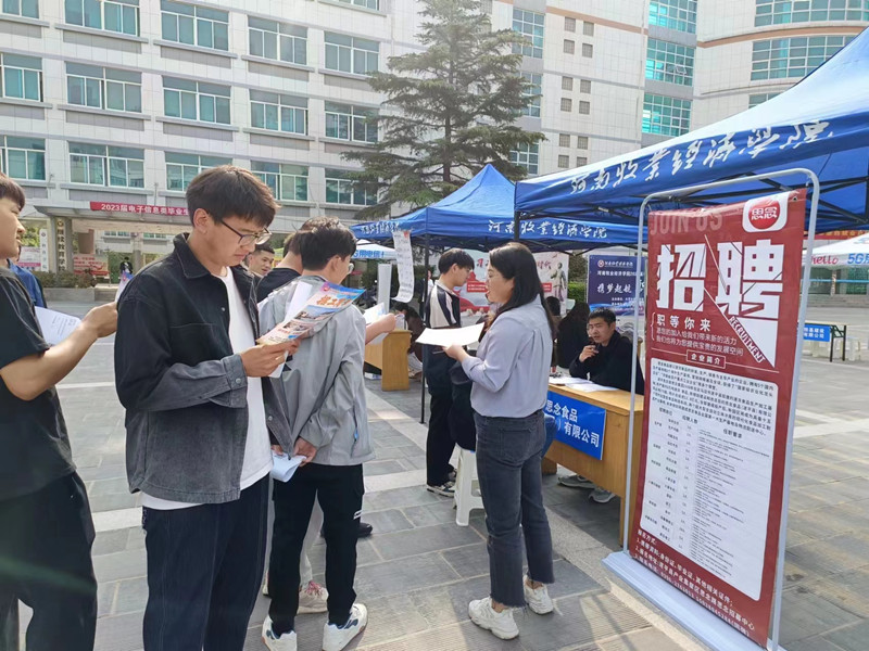 为深入贯彻党的二十大精神,落实党中央、国务院“稳就业”“保就业”决策部署,推动毕业生与用人单位之间精准的供需对接,拓宽毕业生求职就业渠道,扎实推进毕业生充分就业,4月13日,太阳集团tyc234cc组织举办2023届毕业生校园双选会。副校长杨志清、大学生就业创业指导服务中心主任胡先锋、副主任张琳、邱荣超莅临双选会现场指导工作。学院党委书记周凯、院长王硕、副书记党美珠、副院长史岳鹏、刘群生等学院领导、毕业班全体辅导员、部分专业教师全程参加双选会。